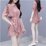 拉伦菲韵 品牌气质女装 棉麻显瘦两件套2020新款夏季休闲时尚短裤套装女洋气粉色减龄 粉色 M