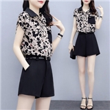 缪资 2020夏季新款韩版时尚雪纺套装女休闲气质短裤小个子洋气两件套潮 黑色套装 M