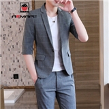 AEMAPE/美国苹果夏季西服套装男修身中袖小西装一套时尚休闲七分袖外套气质男装潮 926灰色套装(送T恤) XL 120-135斤