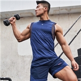 OMG潮流 网纱背心男速干衣运动跑步服紧身健身训练篮球服坎肩 蓝色 L