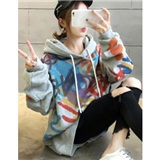 时尚欧陆 卫衣女宽松连帽中长款女士上衣潮2020春秋时尚套头韩版慵懒风印花学生款长袖嘻哈少女短外套 灰色 L