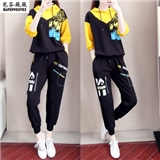 芭芬薇薇运动休闲套装女时尚2020秋季新款宽松七分袖连帽卫衣洋气两件套潮 黑色两件套 S