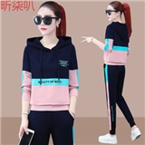 昕柒叭连帽卫衣运动套装女2020新款时尚潮流休闲运动服宽松韩版两件套 宝蓝色 L(建议98~110斤)