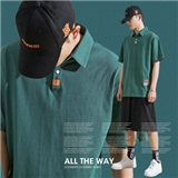 麦克丹奴 短袖t恤男 夏季polo衫男士潮牌翻领T恤纯棉休闲POLO衫五分袖bf宽松夏装体恤打底衫 绿色带领G1008 L推荐125-145斤