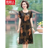 南极人 中老年女装2020夏季新款大码宽松短袖雪纺妈妈装中年连衣裙时尚洋气碎花裙子 N3-NRB03-3008-黄花 3XL【建议120-135斤】