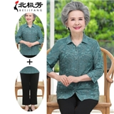 北极芳 妈妈装中袖衬衫60-80岁中老年女装老太太奶奶装夏装上衣两件套装翻领衬衣104-QH2021 绿色套装 2XL【105-120斤】