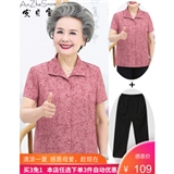 安贞雪中老年女装奶奶装夏装翻领衬衫2020夏季老年人女士朴素碎花衬衣开衫妈妈装老太太衣服LL3405 红色两件套装 3XL建议125-145斤