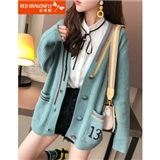 红蜻蜓 毛衣外套女2020春秋新款韩版宽松显瘦慵懒风外搭洋气针织衫开衫百搭休闲上衣潮 WL727 绿色 均码