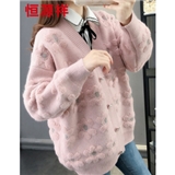 恒源祥针织衫女2020秋季新品韩版ing潮慵懒风宽松显瘦开衫针织衫女百搭很仙的女外套1487 粉色 M