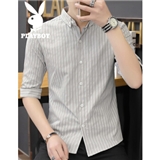 短袖衬衫男2020夏季新品透气韩版条纹衬衣男装青年薄款宽松休闲外套五分袖上衣服 6023灰色 M