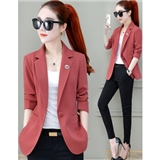 婪澈小西装女2020年春秋女装新款女韩版修身显瘦纯色外套女设计感小众气质长袖西服 雪松红 L