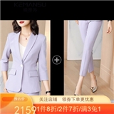 珂曼苏品牌女装紫色小西装套装女2020年秋季气质休闲职业西服外套韩版名媛小香风 西装+裤子 S
