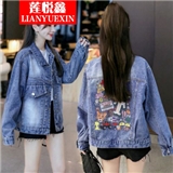 莲悦鑫短外套女大码外套女2020春秋新款韩版宽松印花牛仔外套女百搭网红夹克上衣18631 A蓝色背后涂鸦 S