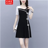 尼熙美 大码女装胖mm2020夏装新款胖妹妹气质宽松显瘦遮肚子小黑裙加肥加大小香风旗袍遮肉连衣裙 黑色 3XL 建议145-160斤