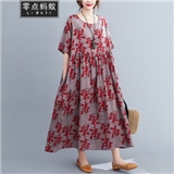 零点蚂蚁200斤大码女装胖mm夏装文艺复古遮肚子宽松印花棉麻连衣裙加肥加大码洋气时尚休闲裙子胖人女装 图片色 均码【130-220斤】