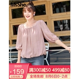 MsShe大码女装2020新款胖mm柔软细腻凉快舒适人棉方领泡泡袖衬衫 薄雾玫瑰色现货 3XL