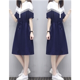 婪澈连衣裙女2020女装夏季新款轻熟风韩版收腰显瘦气质洋气流行夏天长裙子 藏青色 请下正确尺码