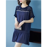 红粉宣言2020夏季新款百搭宽松蕾丝连衣裙显瘦短袖拼接裙子 蓝色 L
