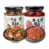 [田野故事]湖南特产外婆菜炒腊肉农家开胃咸菜拌饭酱玻璃瓶装加肉香辣湘西下饭菜210g 外婆菜炒腊肉210g/瓶+香菇牛肉酱258g/瓶