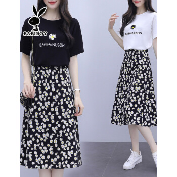 BABIBOY 半身裙套装女2020夏季新款韩版连衣裙中长款两件套套装裙小个子修身显瘦时尚减龄裙子 黑色 M
