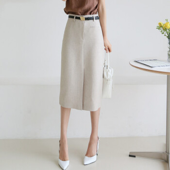SRN轻奢女装 高腰半身裙女2020夏新款修身显瘦包臀裙气质通勤开叉一步裙中裙 灰杏色 S