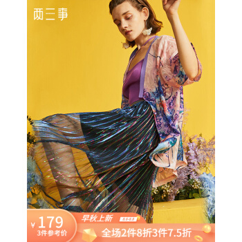 两三事 轻盈曼舞 2020早秋新款时尚彩色亮丝百褶a字半身裙 彩色 L
