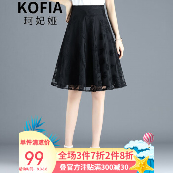 珂妃娅 半身短裙女a字裙2020夏薄款裙子黑色欧根纱中长百褶蓬蓬网纱裙 9936 黑色 L/28码-2尺1