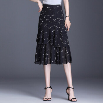 欧偲麦 a字裙半身裙夏季女士雪纺鱼尾裙中长款百褶裙子2020新款高腰蛋糕 9722 花色 XL/29