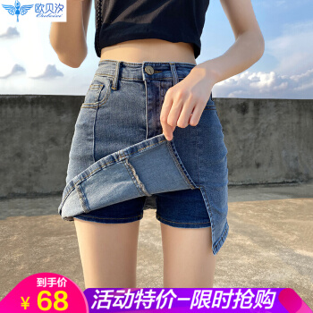 欧贝汐牛仔裙半身包臀裙夏季2020学生高腰短裙开叉半身裙裤女士裙子 蓝色 S