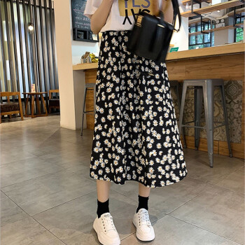阅樱半身裙女中长款 2020新款女裙雪纺半身裙夏学生小雏菊韩版松紧腰高腰碎花裙下半身裙子蓬蓬裙伞裙 图片色 均码(85-130斤)