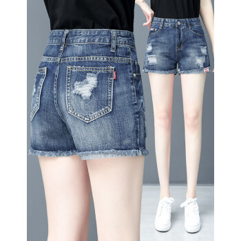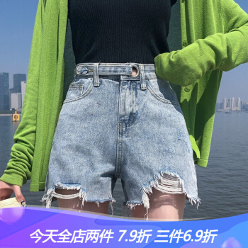 沫澜仟衣破洞牛仔短裤女2020夏季薄款韩版高腰显瘦休闲百搭裤子女网红阔腿a字热裤潮 2039浅蓝 XS