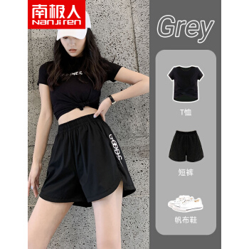 南极人 速干运动短裤女宽松2020新款休闲夏季薄款高腰阔腿裤夏天外穿冰丝跑步裤 YYR912 黑色 请拍正确尺码