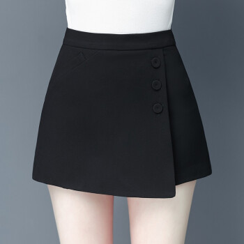 芳帛短裤女夏季2020新款韩版黑色百搭外穿裙裤宽松高腰显瘦白色a字裤 黑色 L