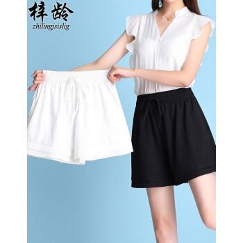 梓龄 短裤女运动裤女2020新款夏季加肥加大码冰丝棉麻短裤女百搭休闲阔腿外穿运动裤薄款三分裤 黑色 请拍对应尺码