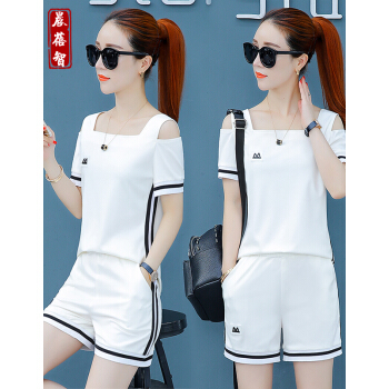 仙器 短裤女休闲套装女短裤运动服夏季新款2020网红时尚胖MM大码短袖T恤两件套潮 白色 M