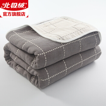 北极绒 毛巾被纯棉全棉空调被六层纱布巾夏凉被盖毯毯子儿童午睡毛毯婴幼儿纱布浴巾 虚线格灰 90*100cm