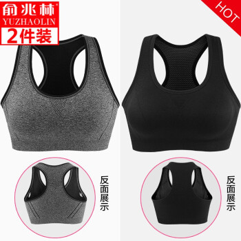 【2件装】俞兆林高强度运动内衣防震跑步背心少女聚拢无钢圈薄款瑜伽睡眠无痕学生运动文胸美背内衣文胸夏季 黑色+灰色 L码 36/80A至40/90B