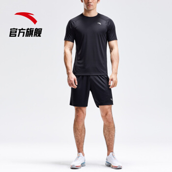 安踏 ANTA 官方旗舰运动套装男健身套装跑步套装足球套两件套短袖短裤套装 基础黑-4 L(男175)