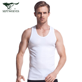 七匹狼背心男 男士背心纯棉百搭跨栏打底汗衫修身弹力背心 白色XL码