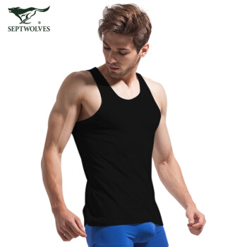 【49元2件】七匹狼背心男 男士纯棉背心修身打底弹力背心 黑色XL码