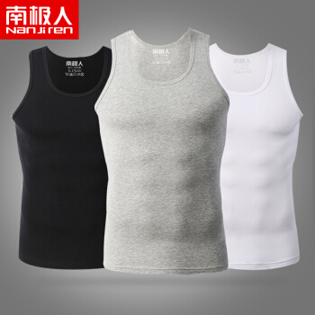 南极人男士背心男纯棉弹力紧身工字式运动打底汗衫3件装NJSA0661 黑1白1灰1 XL