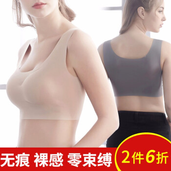 莫代尔运动文胸女女士薄款无痕背心无钢圈美背内衣防震跑步女性感聚拢大码睡眠胸罩 肤色(2件6折) M(适合100-120斤)