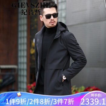 纪诗哲轻奢品牌男装风衣2020新款中长款男大衣秋季新款商务男装中年休闲春秋外套 黑色 170/88A
