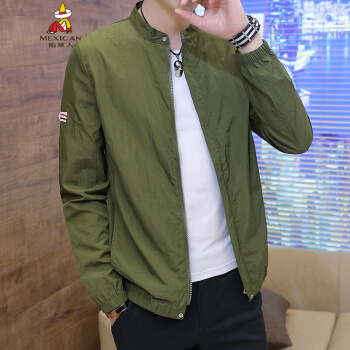 稻草人防晒衣男2020夏季新品超薄款透气防紫外线皮肤衣男士韩版潮流帅气风衣夹克外套户外连帽防晒服男 军绿色 3XL