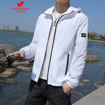 富贵鸟防晒衣男2020夏季新品超薄透气防晒服男装大码户外防紫外线速干外套夹克弹力皮肤衣垂钓服抗皱 白色 XL
