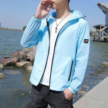 富贵鸟防晒服男夏季2020新款防晒衣男超薄透气连帽潮流薄款透气夏天大码外套衫青年男装钓鱼服皮肤衣 浅蓝 XL