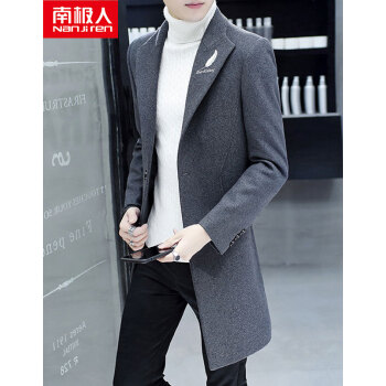 南极人风衣男中长款韩版修身帅气2019秋冬新款男士羊毛大衣秋款外套 868/灰色 175/XL