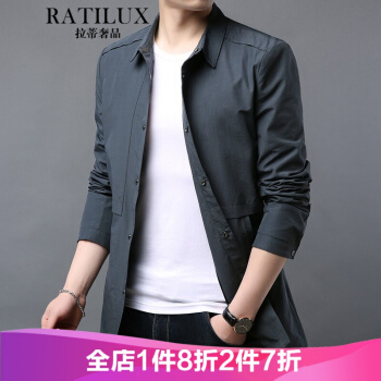 拉蒂奢品RATILUX品牌中长款风衣男韩版商务休闲男装春秋翻领帅气潮流百搭夹克秋季外套 灰色(春秋常规款) 175/L
