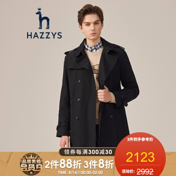 【商场同款】哈吉斯HAZZYS 秋季风衣男时尚简约英伦风衣外套ASWZH09CH01 黑色BK 175/96A 48