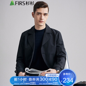 FIRS杉杉 风衣男 2020秋季新款商务休闲外套男士西装领轻薄款上衣夹克男 FDJ20382208 黑色 170